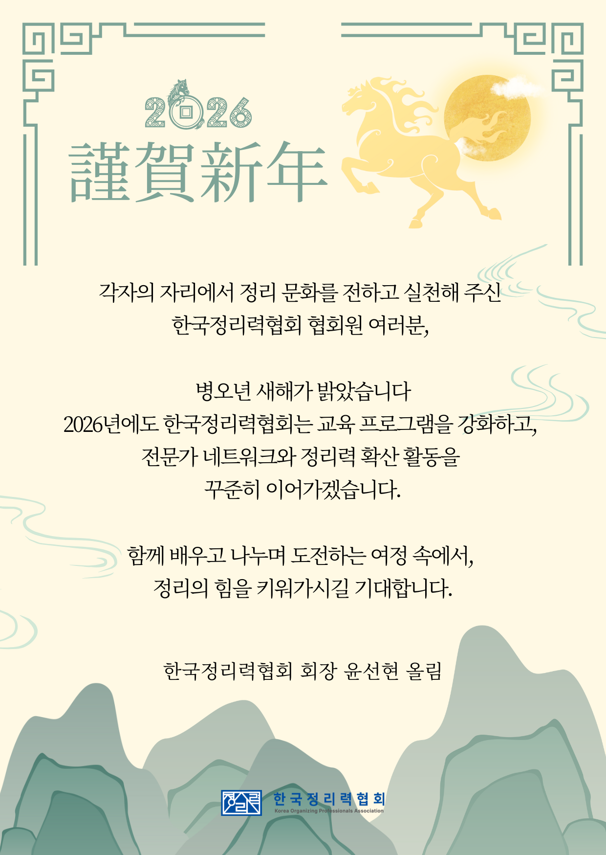 대한민국 정리 산업 발전으로 개인의 삶을 윤택하게 하고, 정리력 전문가의 위상을 높이겠습니다.
